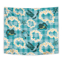 Aloha Hawaii Paniolo Teal Palaka Tapestry Coastal Rodeo