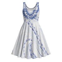 Placeholder Aloha Lei Onaona Midi Dress Navy Blue Hawaiian Tribal Pattern - Polynesian Pride