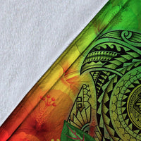 American Samoa Polynesian Premium Blanket - Manta Ray Tropical Flowers (Green)