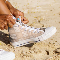 Step up your shoe game with high-top sneakers designed for comfort, style, and individuality. Handcrafted with durable canvas and a rubber sole, Polynesian Pride Beige Palaka Quilt Hawaii High Top Shoes Traditional Hawaii-plaid Pattern is made to match your lifestyle — casual, sporty, or streetwear-inspired.