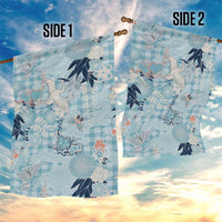 Blue Palaka Crane and Flowers Garden Flag Japan Heritage Spirit