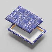 Blue Palaka Japanese Patterns Canvas Wall Art Koi Fish Asanoha Sakura Patchwork Stylized LT14