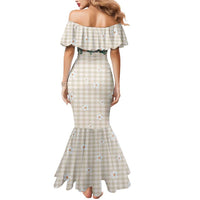 Brown Hawaiian Palaka Mermaid Dress Kukui Nut Money Lei