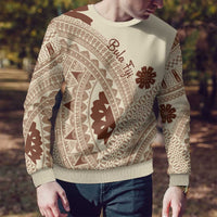 Bula Fiji Classic Masi Tapa Ugly Christmas Sweater Vintage Beige LT7