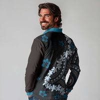 Placeholder Bula Fiji Women's Day Long Sleeve Polo Shirt Indigo Masi Tapa - Polynesian Pride