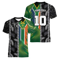 Placeholder Custom Aotearoa South Africa Rugby Freedom Cup Women V-Neck T-Shirt Maori Silver Fern Art and Sporty Flag SA - Polynesian Pride