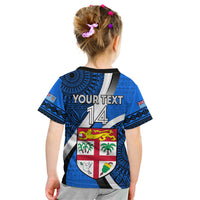 Custom Fiji Rugby Kid T Shirt World Cup 2023 Go Champions Fijian Tapa Blue Version