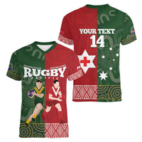 Custom Mate Maa Tonga And Kangaroo Australia Women V-Neck T-Shirt Tongan Kupesi Mix Aboriginal Art LT14