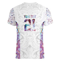 Custom New Zealand Aotearoa Women V-Neck T-Shirt Pink Maori Paua Shell Indigenous LT9