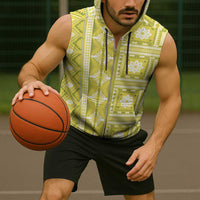 Order your Fiji Masi All Yellow Sleeveless Zip Hoodie Tapa Pattern by Polynesian Pride today and discover the perfect mix of movement, comfort, and street-ready style.