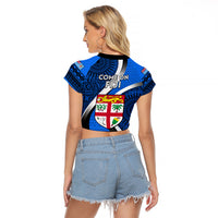 Fiji Rugby Raglan Cropped T Shirt World Cup 2023 Go Champions Fijian Tapa Blue Version
