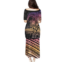 Floral Polynesian Hibiscus Tattoo Family Matching Puletasi and Hawaiian Shirt Peach Gradient Style
