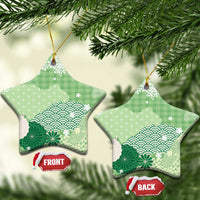 Green Palaka Japanese Patterns Ceramic Ornament Asanoha Seigaiha Sakura Motif