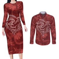 Hawaii Father's Day Vintage Lei Couples Matching Long Sleeve Bodycon Dress and Long Sleeve Button Shirt Hauoli la Makuakane - Red
