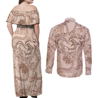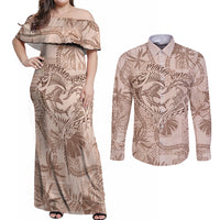 Hawaii Father's Day Vintage Lei Couples Matching Off Shoulder Maxi Dress and Long Sleeve Button Shirt Hauoli la Makuakane - Beige