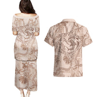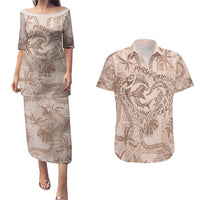 Hawaii Father's Day Vintage Lei Couples Matching Puletasi and Hawaiian Shirt Hauoli la Makuakane - Beige