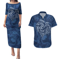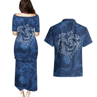 Hawaii Father's Day Vintage Lei Couples Matching Puletasi and Hawaiian Shirt Hauoli la Makuakane - Blue