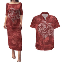 Hawaii Father's Day Vintage Lei Couples Matching Puletasi and Hawaiian Shirt Hauoli la Makuakane - Red