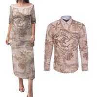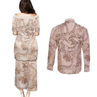 Hawaii Father's Day Vintage Lei Couples Matching Puletasi and Long Sleeve Button Shirt Hauoli la Makuakane - Beige