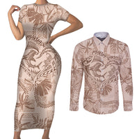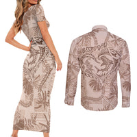 Hawaii Father's Day Vintage Lei Couples Matching Short Sleeve Bodycon Dress and Long Sleeve Button Shirt Hauoli la Makuakane - Beige