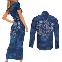 Hawaii Father's Day Vintage Lei Couples Matching Short Sleeve Bodycon Dress and Long Sleeve Button Shirt Hauoli la Makuakane - Blue LT7