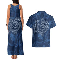 Hawaii Father's Day Vintage Lei Couples Matching Tank Maxi Dress and Hawaiian Shirt Hauoli la Makuakane - Blue