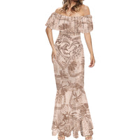 Hawaii Father's Day Vintage Lei Mermaid Dress Hauoli la Makuakane - Beige LT7