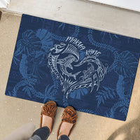 Hawaii Father's Day Vintage Lei Rubber Doormat Hauoli la Makuakane - Blue