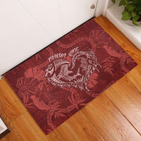 Hawaii Father's Day Vintage Lei Rubber Doormat Hauoli la Makuakane - Red