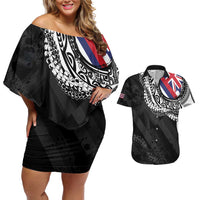 Placeholder Hawaii Flag Day Couples Matching Off Shoulder Short Dress and Hawaiian Shirt Hawaiian Maile Lei - Polynesian Pride