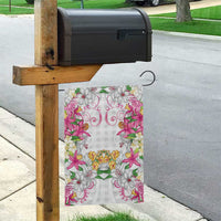 Placeholder Hawaii Palaka Garden Flag White Tribal Pattern With Tropical Flowers - Polynesian Pride