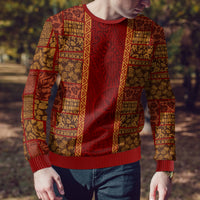 Hawaii Style Hibiscus and Tribal Element Fabric Patchwork Ugly Christmas Sweater LT03