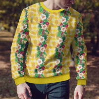 Hawaiian Palaka Ugly Christmas Sweater Hibiscus Pineapple Lei