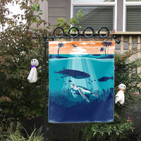 Hawaiian Whale And Turtle In Sunset Polynesian Flag - AH