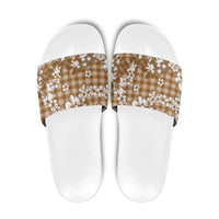 Ready to own your look? Order your pair of Hibiscus Pakala Bronze Brown Slide Sandals Tropical Floral Stylized today and walk in confidence.