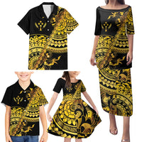 Kosrae Liberation Day Family Matching Puletasi and Hawaiian Shirt Polynesian Floral Tattoo