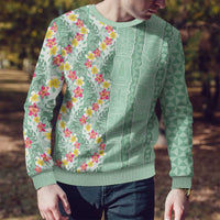 Menthol Green Aloha Hawaii Tiki Ugly Christmas Sweater Tropical Plumeria - Seamless Style LT14