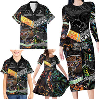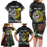 Personalised New Zealand and Australia Family Matching Long Sleeve Bodycon Dress and Hawaiian Shirt Maori Mix Aboriginal Art Style