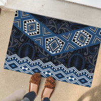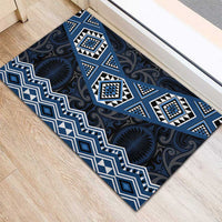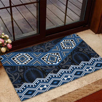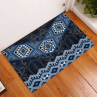 New Zealand Aotearoa Rubber Doormat Blue Taniko Art Maori Pattern