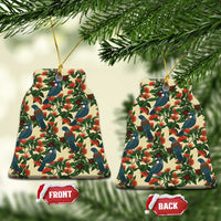 New Zealand Christmas Ceramic Ornament Romantic Tui Birds on Pohutukawa - Ivory