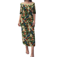Placeholder New Zealand Christmas Puletasi Romantic Tui Birds on Pohutukawa - Ivory - Polynesian Pride