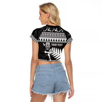 New Zealand Christmas Rugby Personalised Raglan Cropped T Shirt Meri Kirihimete All Black Maori LT14