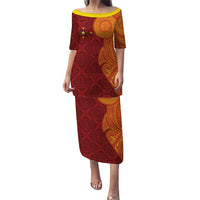 Niue Polynesian Hiapo Tattoo Art Puletasi Half Style Red Yellow Color