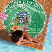 Norfolk Island Pine Tree Christmas Beach Blanket Coat of Arm and Polynesian Pattern