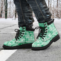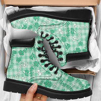 These boots aren’t just footwear — they’re a statement. Designed for those who want all-day comfort, bold style, and sustainable craftsmanship, Polynesian Pride Omaomao Aloha Hawaii All Season Boots Plumeria Lei With Palaka Motif brings durability and originality together in one pair of custom-made boots.