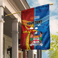 Personalised Fiji and Rotuma Together Garden Flag Tapa and Pacific Art Pattern with Cultural Emblems Half Style