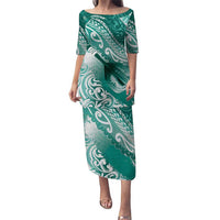 Personalised New Zealand Aotearoa Darts Masters Puletasi Maori Art Tattoo with Tribal Dart Symbol Teal Color