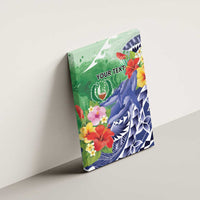Personalised Pohnpei States Humpback Whale Canvas Wall Art Polynesian Tropical Flowers