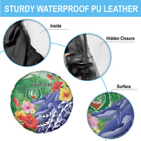 Personalised Pohnpei States Humpback Whale Spare Tire Cover Polynesian Tropical Flowers