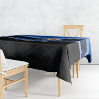 Personalised Tonga Christmas Tablecloth Tongan Coat of Arms Santa With Ngatu Pattern Christmas Blue Style